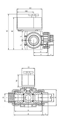 Kugelhahn S4 3W T-Kugel PVC grau, PVC-U Klebemuffe metrisch EPDM PTFE EO510 ECO 230 V AC
