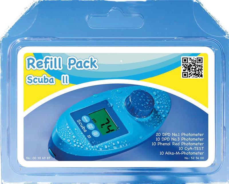 Mit dem Scuba II kann Poolwasser schnell und genau kontrolliert werden. Die integrierte Messkammer wird durch Eintauchen des Gerätes in das Poolwasser gefüllt. Durch Zugabe einer Reagenztablette wird eine charakteristische Färbung erzeugt, die nach dem photometrischen Prinzip vermessen und als Messwert im Display angezeigt wird. Sechs Parameter, Chlor frei, Chlor gesamt, pH, Alkalität, Cyanursäure und Brom werden so innerhalb weniger Minuten gemessen. So wird die Wasseranalytik zum reinsten Vergnügen und der bedenkenlose Badespass kann beginnen.